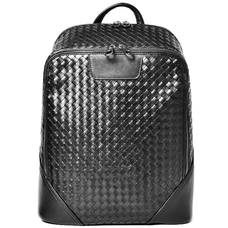 JIA BV背包男潮流百搭时尚潮流大容量商务休闲真皮编织双肩包出差