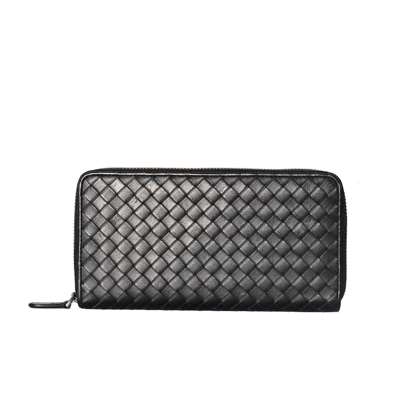 JIA BV手拿包男士手工编织钱包长款拉链包女式小牛皮打蜡手抓包潮