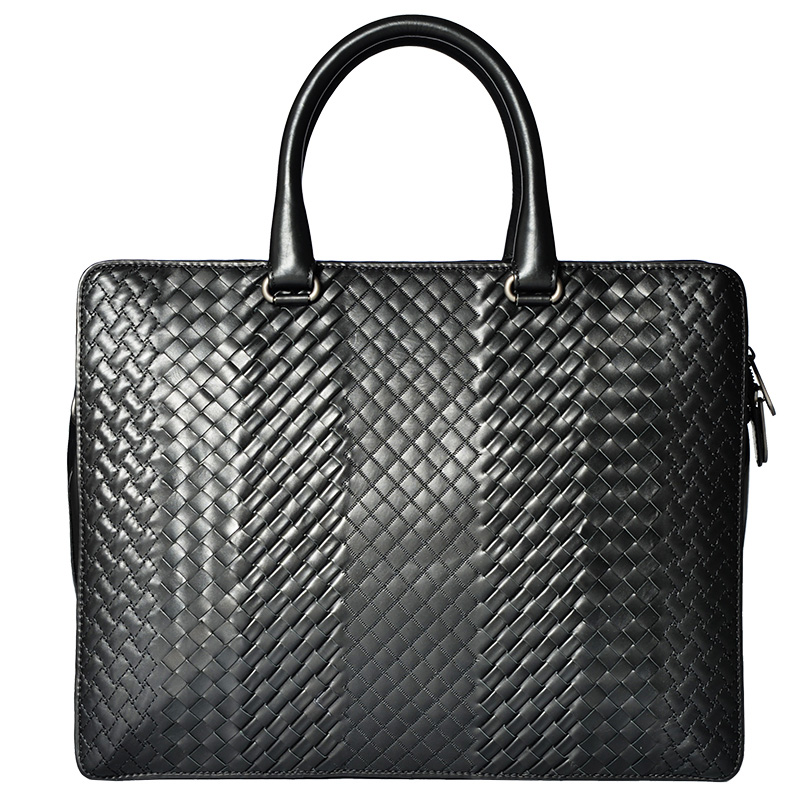 JIA BV手提包男大容量新款商务休闲公文包多隔层编织男包真皮