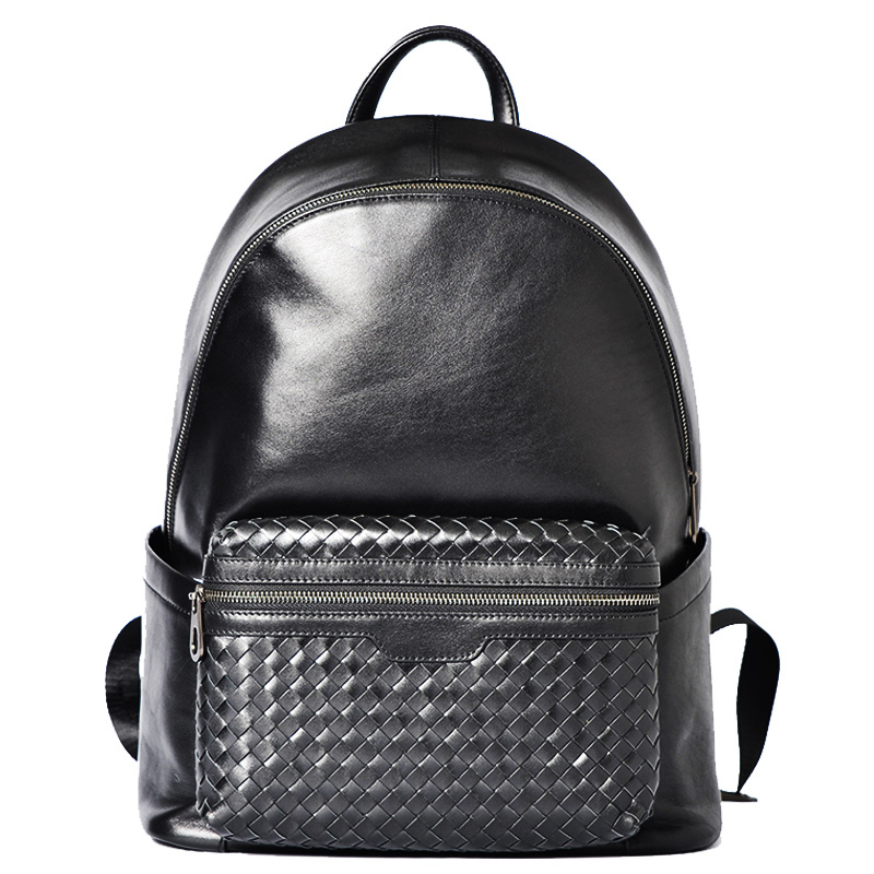 双肩包男大容量纯皮真皮编织旅游休闲商务电脑背包旅行软皮