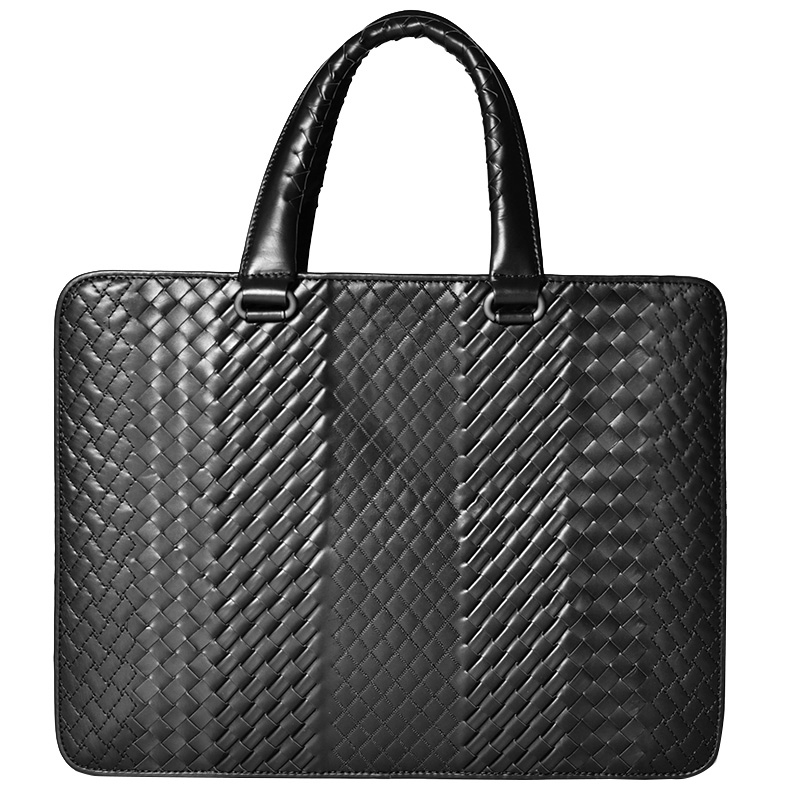 JIA BV公文包男士商务手提包横款真皮编织男包包2018新款潮牌薄小