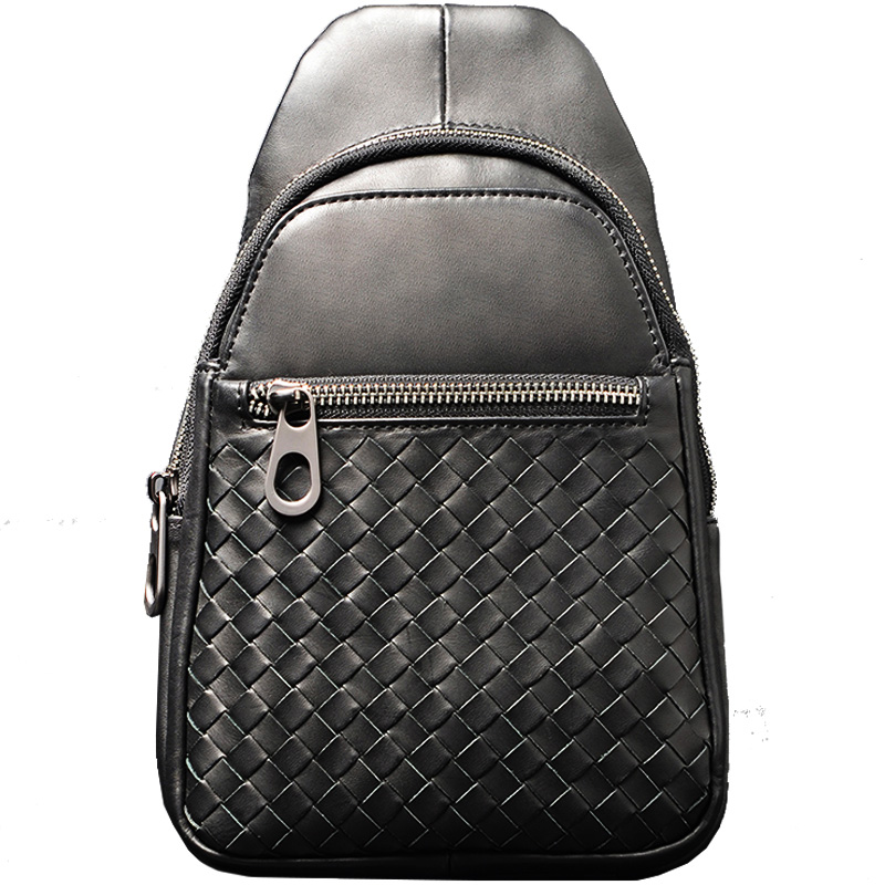 JIA BV胸包男皮质软皮编织真皮男士斜挎胸包小型轻便潮牌休闲新款