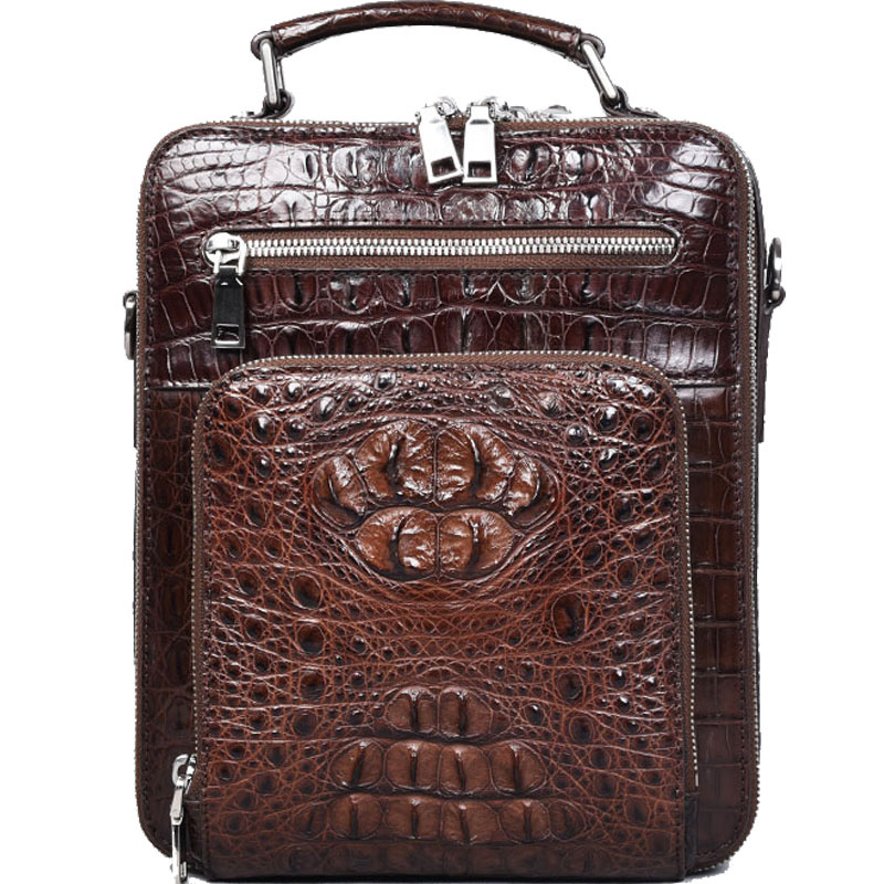男包手提包竖款单肩包男士斜挎包商务公文包真皮泰国鳄鱼皮