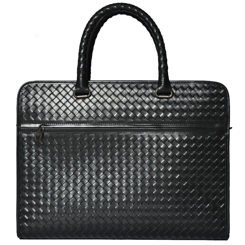 JIA BV手提包大容量休闲横款编织包牛皮公文包男商务手提男士真皮