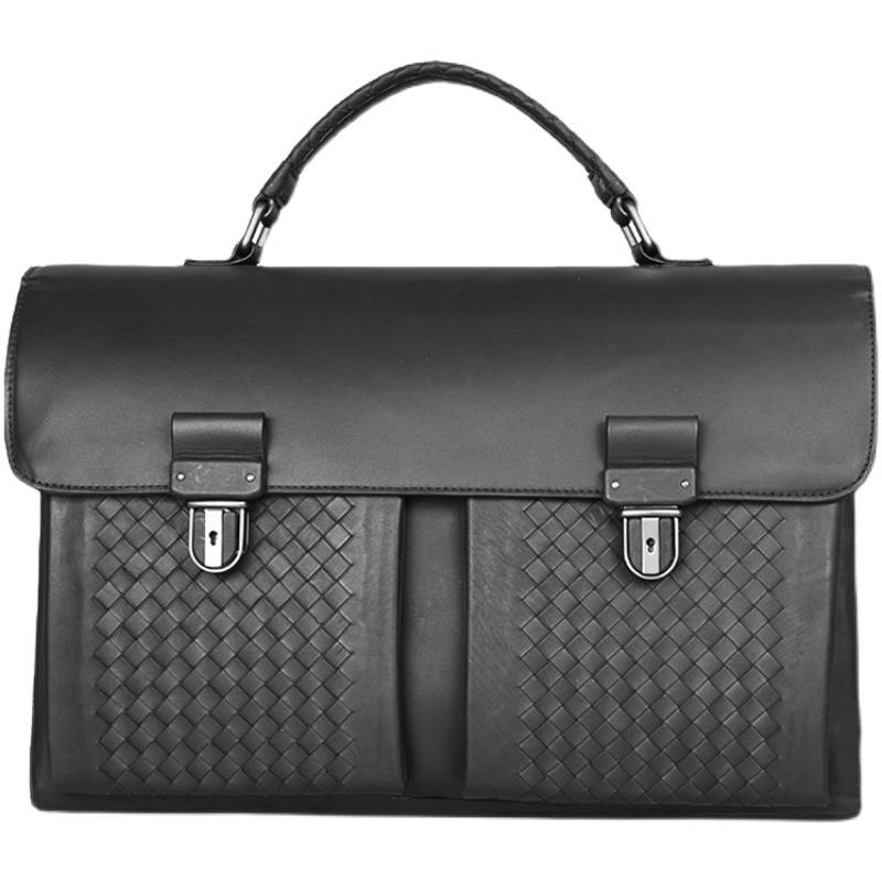 JIABV手提包公文包男士包商务休闲时尚真皮编织男包上班族通勤潮