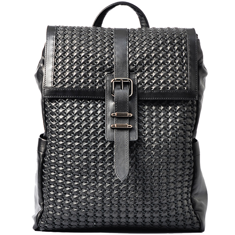 JIA BV双肩包男士商务休闲时尚潮流包盖编织真皮背包书包潮牌户外