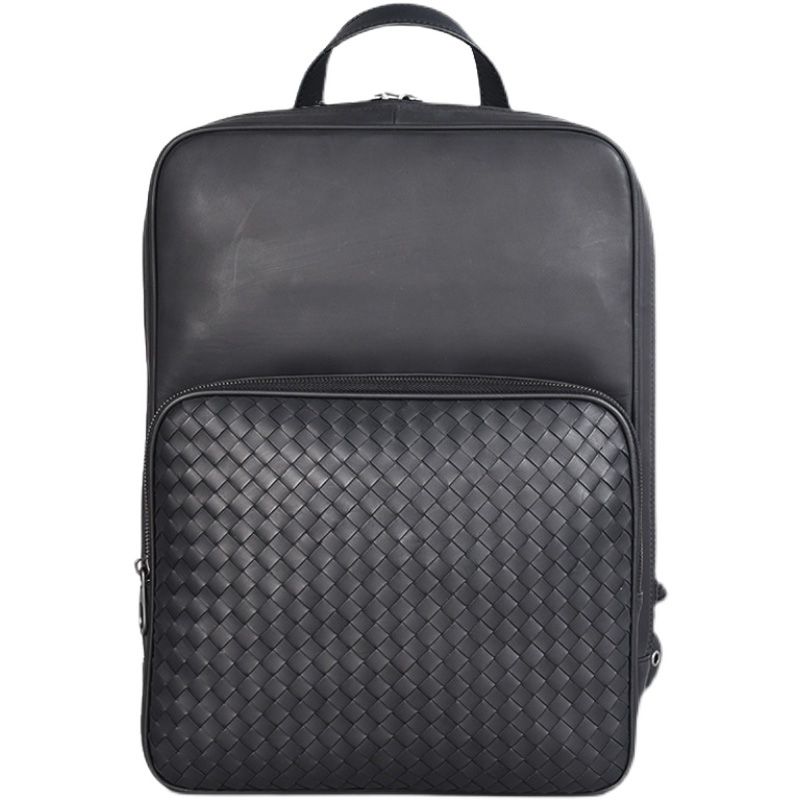 背包男双肩包真皮编织男包潮牌时尚潮流软皮商务书包小号潮