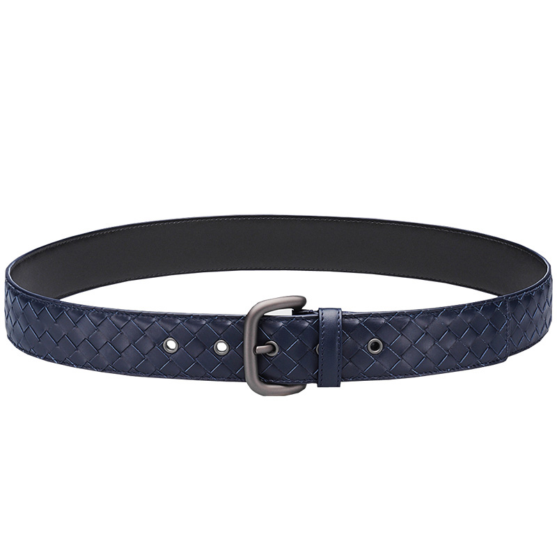 JIA BV男士皮带韩版百搭简约潮人小牛皮编织腰带真皮男式针扣年轻