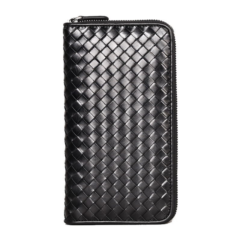 男士手拿包长款拉链钱包男潮牌手工编织胎牛皮多卡位大容量