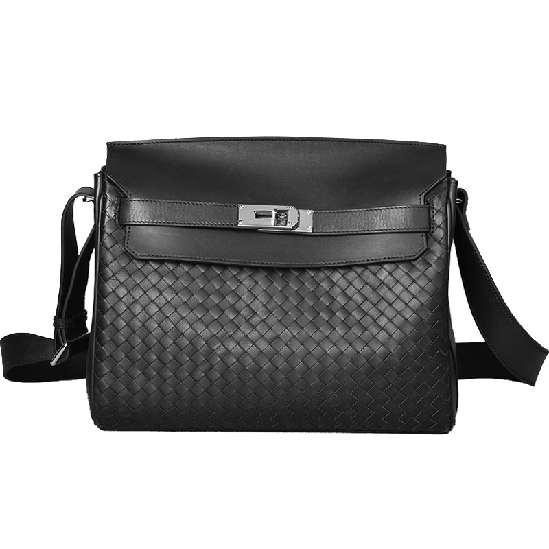 男士斜挎包大容量单肩包邮差包真皮编织男包手提包通勤包高级感潮