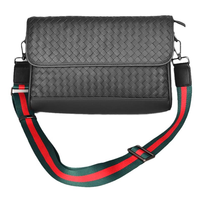 男士斜挎包单肩包2024新款通勤包网格编织包轻奢风真皮平替品牌包