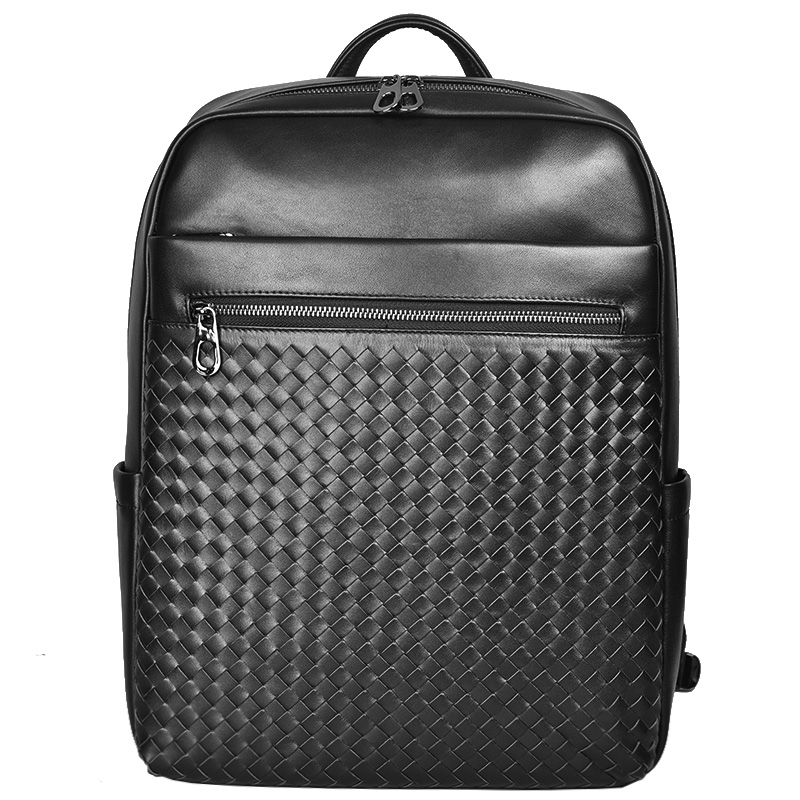 通勤双肩包男士背包电脑包大容量商务休闲旅行真皮编织包时尚牛皮