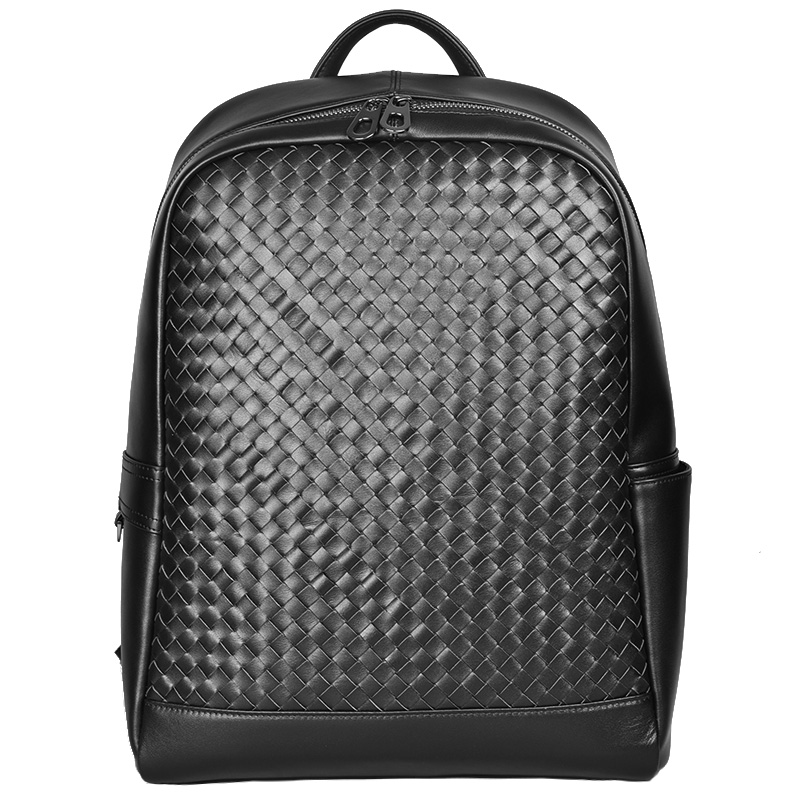 背包男士双肩包商务出差高级感旅行大容量轻便真皮编织休闲书包