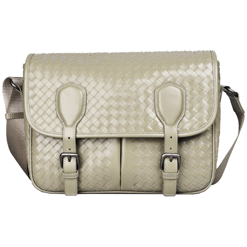 男士斜挎包大容量邮差包通勤真皮编织头层牛皮高端时尚单肩包中号