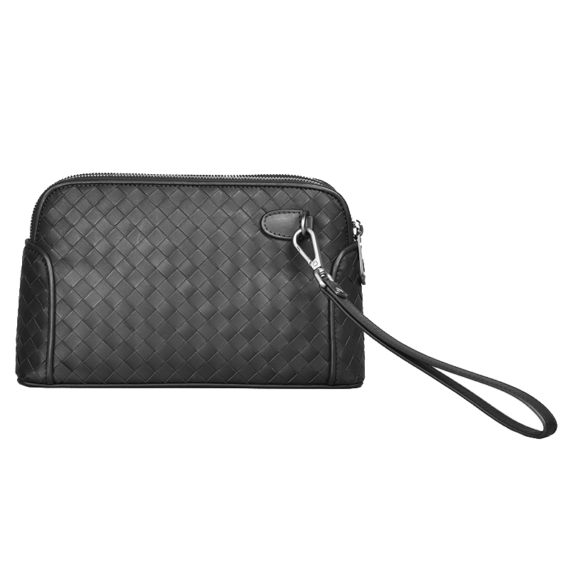 男士手拿包高端手机包真皮奢侈手工编织配手腕带多隔层双拉链小号
