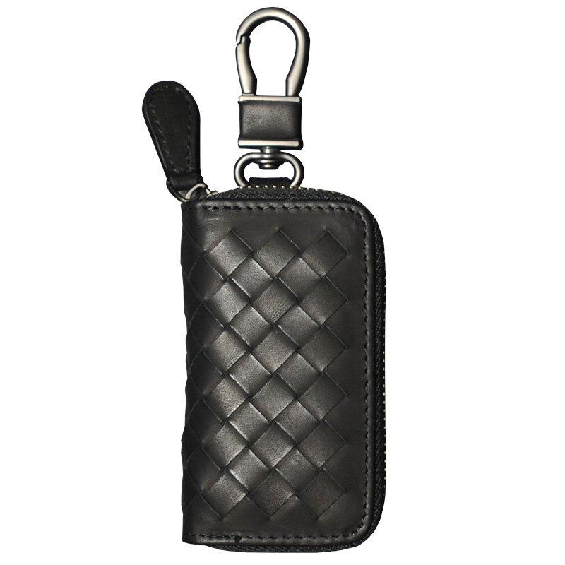 JIA BV汽车钥匙包通用钥匙套真皮手工编织拉链保护套钥匙扣挂饰